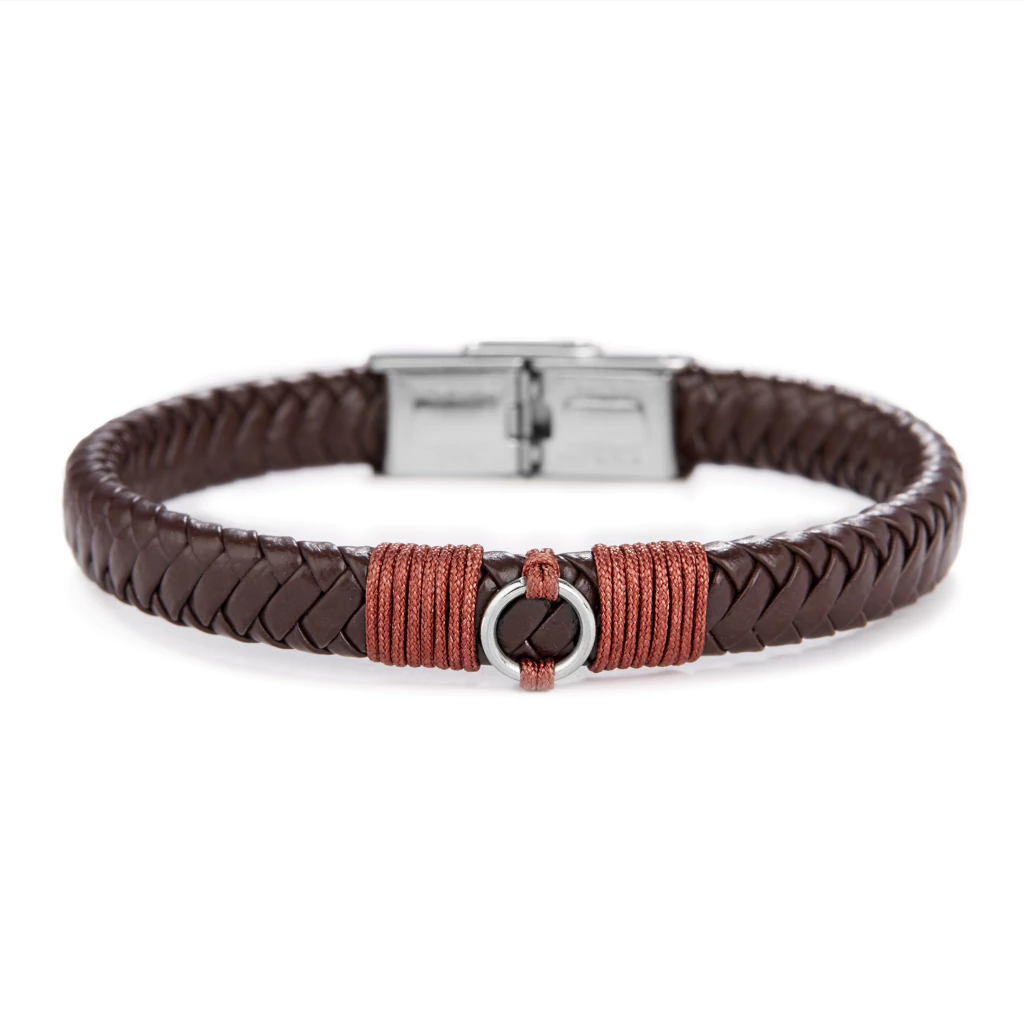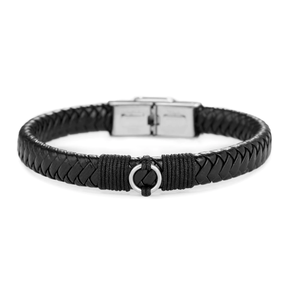 La Pulsera Capri de NEO MEN está confeccionada con cuero sintético de alta calidad, disponible en color negro o café, con un detalle central metálico que aporta presencia y equilibrio visual.