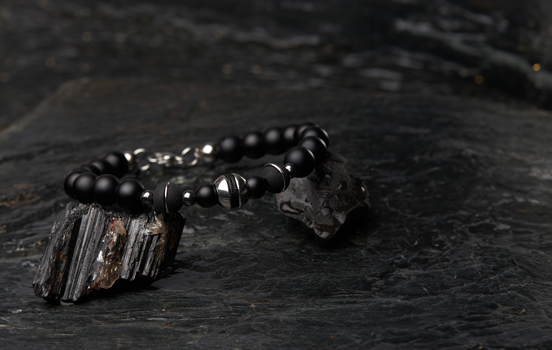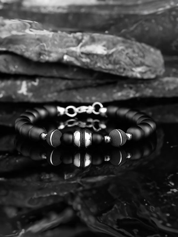La Pulsera Erais combina la solidez del acero, la intensidad del ónix y la flexibilidad del neopreno, creando una pieza con un diseño equilibrado entre sofisticación, resistencia y confort. Su estructura minimalista y versátil la convierte en el accesorio perfecto para quienes buscan un estilo distinguido con un toque contemporáneo.