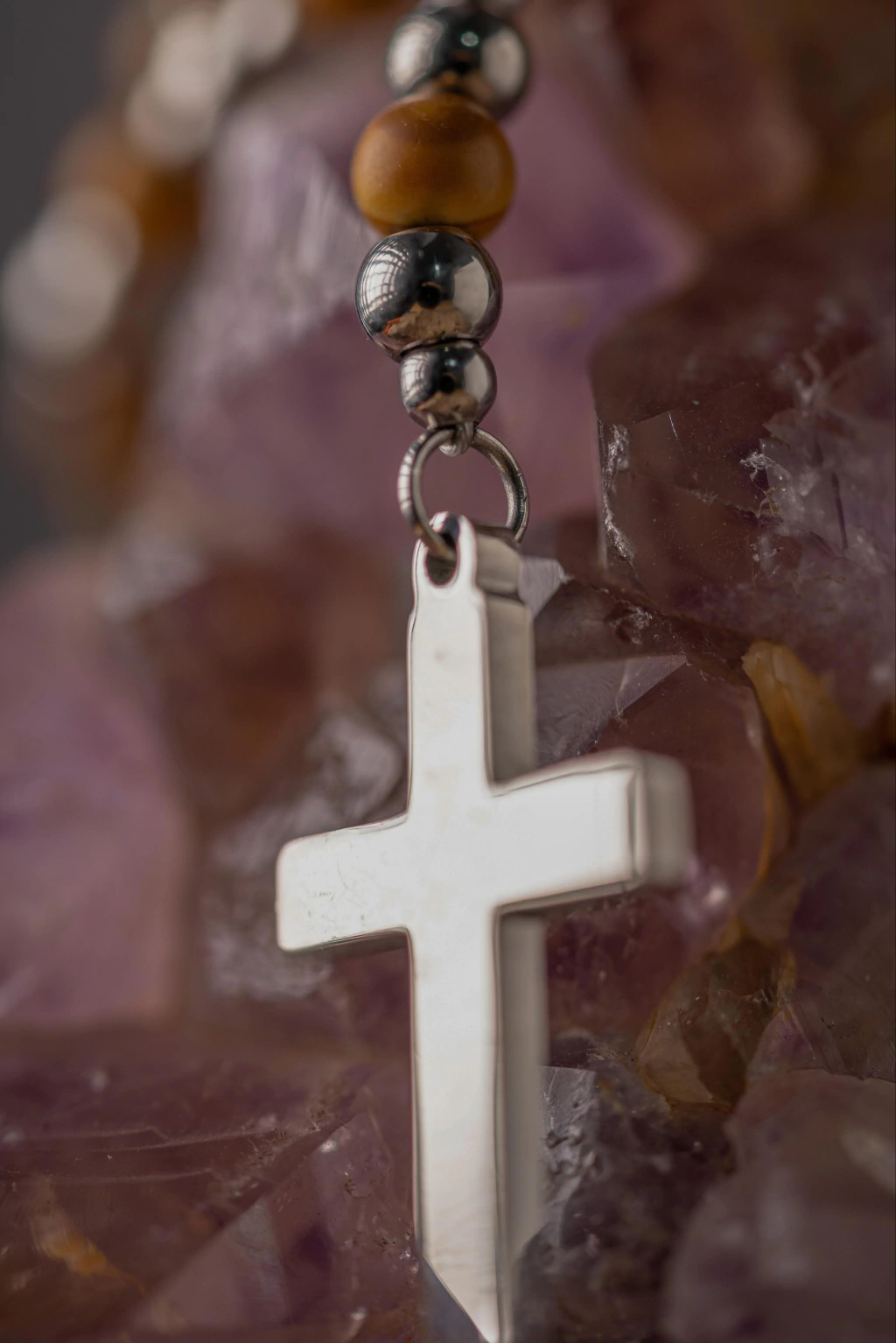 Cruz de acero quirúrgico: de líneas limpias y definidas, representa fortaleza, propósito y fe.